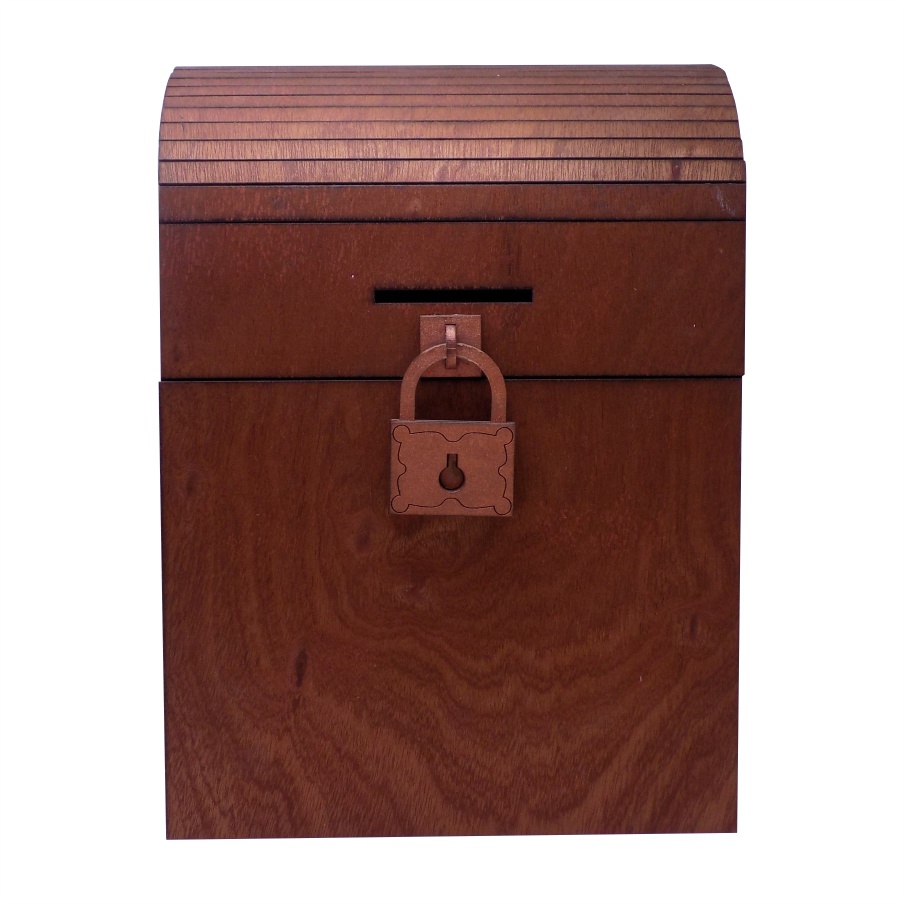 Cofre de triplay con candado de madera entintado