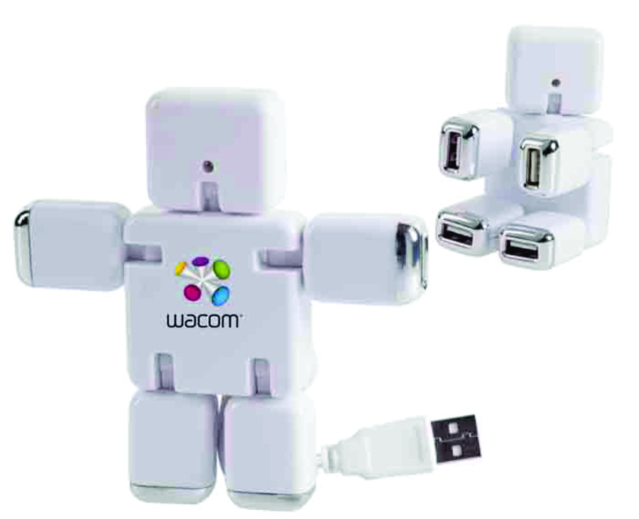 Hub con forma de robot, con 4 entradas giratorias para direccionar dependiendo de la posición de la conexión. Longitud de cable: 70 cm.