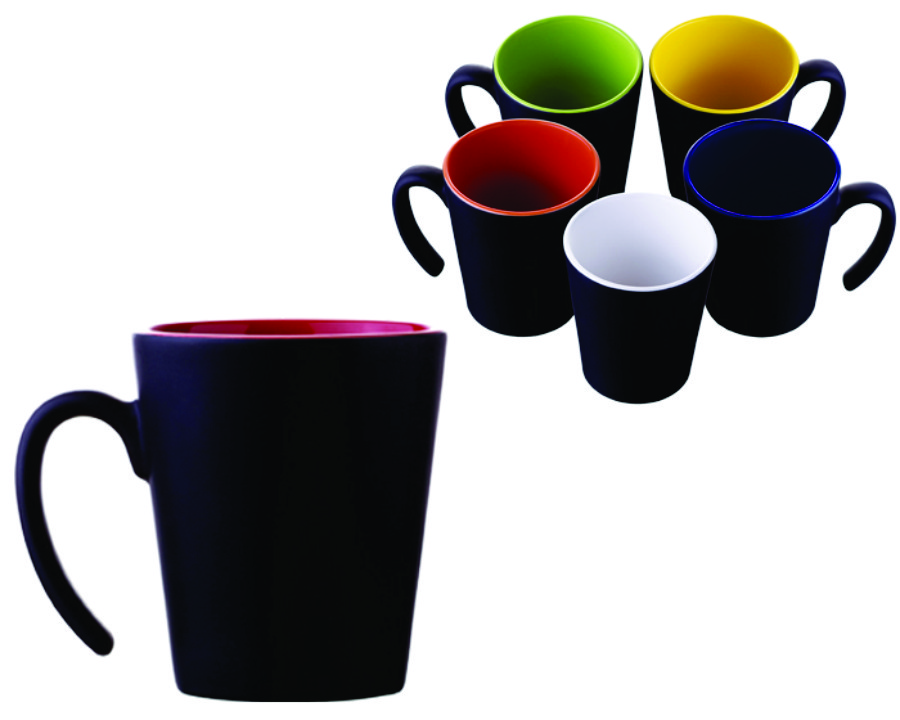 Tarro de cerámica, forma cónica con asa volada, acabado exterior mate. Cap. 12 OZ.
