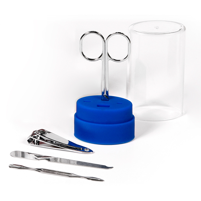 Set de manicura con 4 piezas en estuche ovalado de plástico transparente, con base de color.