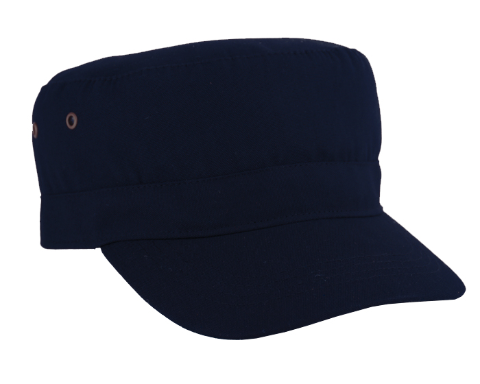 Gorra de algodon tipo militar con visera y banda de ajuste en velcro. Para lograr un estilo diferente. Cuenta con 2 ojillos en los laterales. Disponible en 3 colores.
