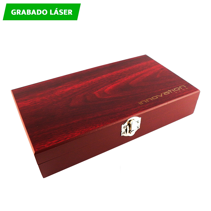 Set de abre vinos con 5 piezas en caja rectangular de madera.