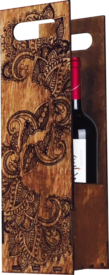 Porta vinos de madera triplay de 4.5 mm. entintada. NO INCLUYE VINO - NO INCLUYE GRABADO LÁSER
