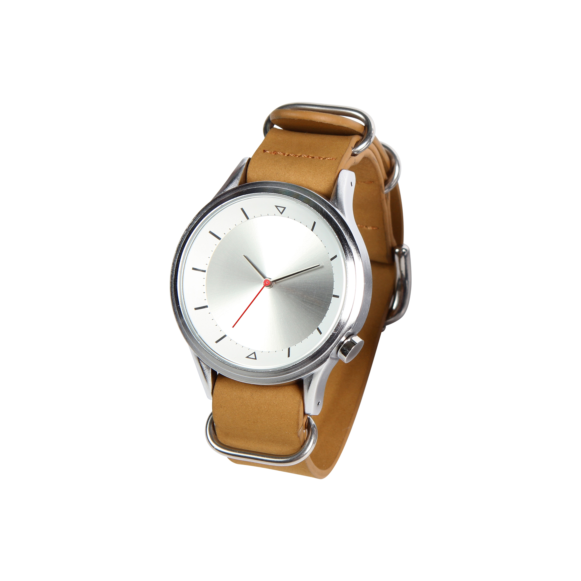 Reloj de pulso unisex con caja metálica, correa de piel.