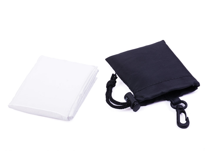 Poncho transparente en bolsa portátil. Incluye gancho para sujetar tipo llavero.