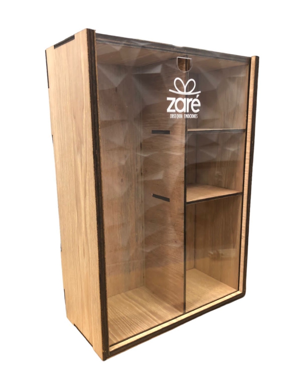 Caja de TRIPLAY con ventana de acrílico.