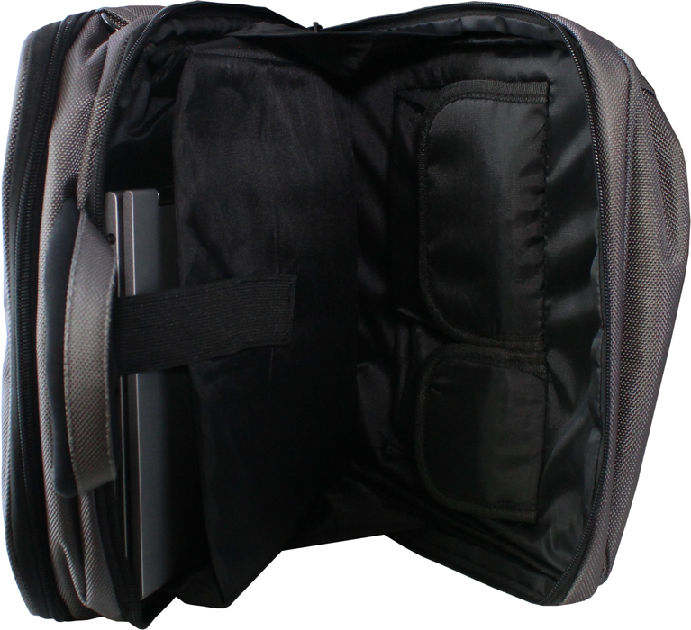 Porta Notebook, Dos compartimentos principales y un compartimento al frente. Correas ajustables, permite usarse como mochila o como cartera. Salida para auriculares.